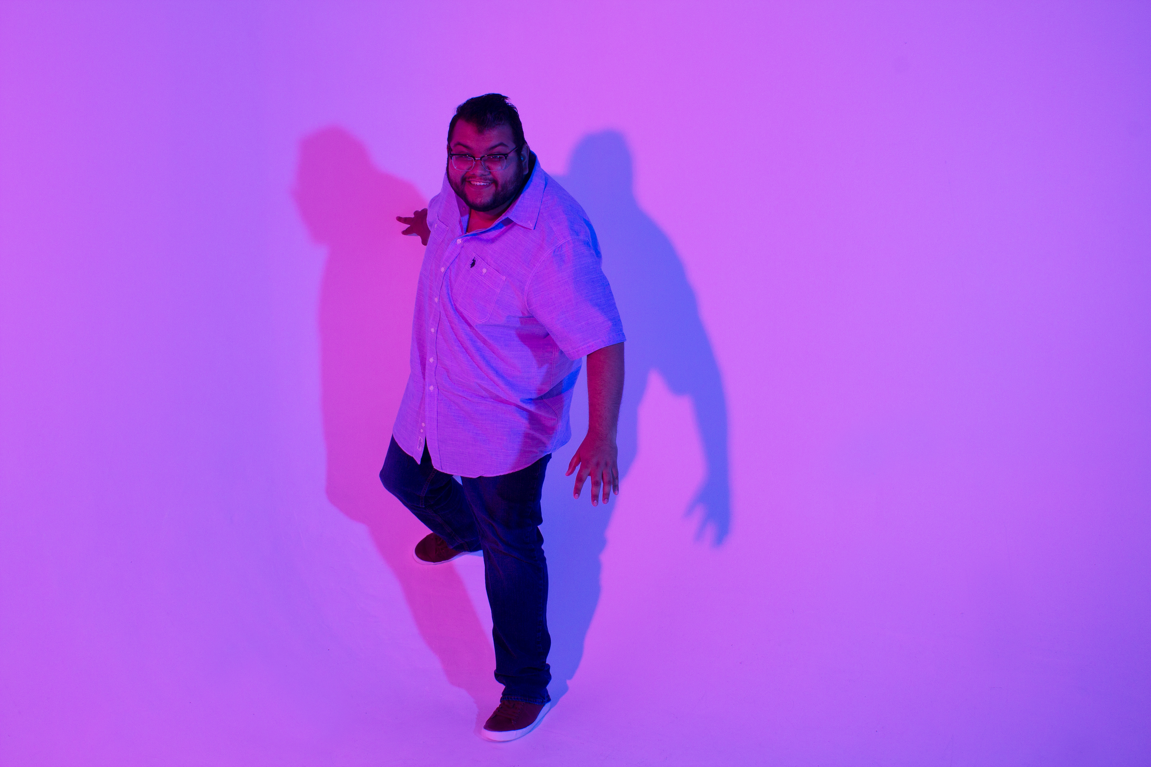 Color is a fun way to express yourself. Blue and red strobe lights were used to create these different color effects. The models were told to move how ever they felt comfortable to do so.